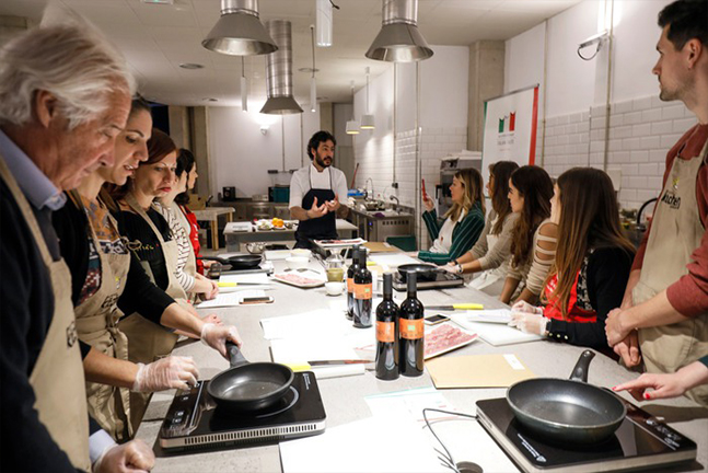 Giuseppe Palo, chef del restaurante Un’altra Storia ha contagiado los asistentes con su entusiasmo y pasión por una gastronomía tradicional que premia la investigación y la elección de productos de altísima calidad, proponiendo tres platos típicos de Sicilia que fueron elaborados por todos los asistentes: sarde a Beccafico con uva passolina di Pantelleria DOP; baccalá alla ghiotta con capperi di Pantelleria IGP y tomate San Marzano DOP y los cannoli con «ricotta» de oveja siciliana, acompañados también por dos vinos DOP sicilianos. Platos tradicionales que han permitido dar a conocer a los participantes la importancia de la calidad y de la autenticidad de la gastronomía italiana.